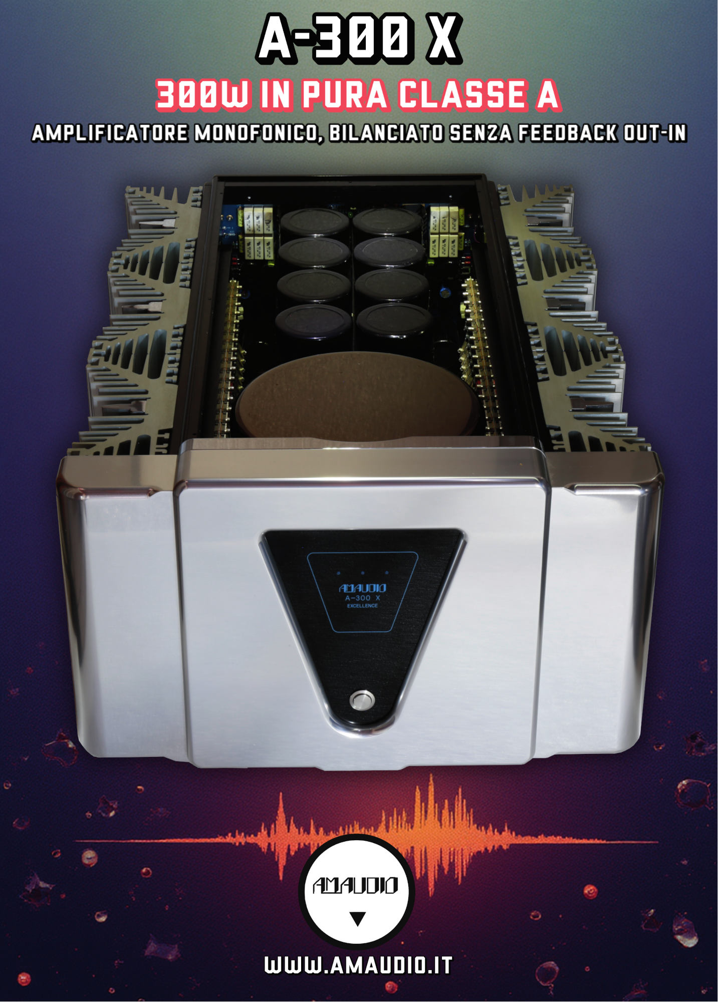 Questi due finali monofonici bilanciati condividono l’identica base progettuale e sono stati progettati per stabilire un riferimento nella categoria degli amplificatori finali, grazie alla loro capacità di fornire una potenza elevata e una straordinaria qualità di riproduzione musicale. L’A-300X/A-1000X è un amplificatore bilanciato costituito da due circuiti di amplificazione simmetrici. Lo stadio di amplificazione d’ingresso del finale utilizza solo due componenti attivi: il primo mosfet 2SK214, si occupa dell’intero guadagno in tensione richiesto, mentre il secondo mosfet 2SJ77, guadagna solo in corrente realizzando un’uscita a bassa impedenza.