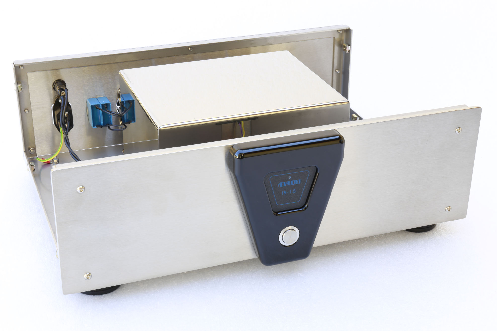 AM Audio ha adottato un diverso approccio, avvalendosi anche delle esperienze sul campo di uno dei suoi consulenti che problemi simili li ha dovuti affrontare e risolvere in passato sia nel campo dell’audio professionale che nell’elettromedicale, ed ha pertanto optato per un sistema basato su un trasformatore di isolamento con uscita bilanciata, realizzato su un nucleo in lamierino magnetico a grani orientati con una particolare geometria che permette di avere contemporaneamente un elevato accoppiamento e una bassa capacità fra avvolgimenti primari e secondari, condizioni essenziali la prima per avere basse perdite di inserzione e la seconda per non trasferire in uscita i disturbi in alta frequenza che devono essere bloccati. Tramite questo trasformatore di isolamento viene anche superato il concetto di “fase e neutro” della linea di alimentazione, difatti la sua uscita risulta essere bilanciata rispetto a terra ottenendo così l’automatica cancellazione di eventuali disturbi captati dalle linee di uscita.